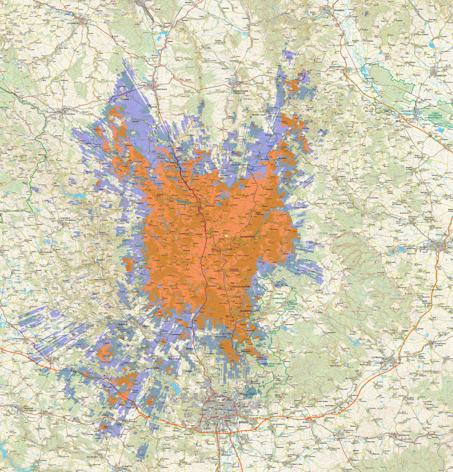 1. na vizualizačním portálu Českého telekomunikačního úřadu (teoretický výpočet)