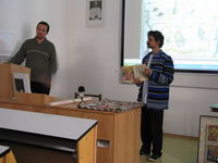 Aby ušetřili své síly, poprosili o pomoc za mikrofonem sekretářku pana ředitele Aničku Mackovou. Její zpravodajský vstup dopadl na výbornou.